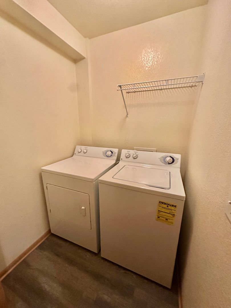 This property boasts a fantastic location and numerous updates! The open floor plan features a cozy gas fireplace, an eat-up bar, with the kitchen overlooking the dining area. Beautiful plank flooring runs throughout the space. The bedrooms do not share walls, offering added privacy. There are two large full bathrooms and a laundry room equipped with a full-size washer and dryer. Additional amenities include central AC, a detached garage, and an exterior locked storage unit.