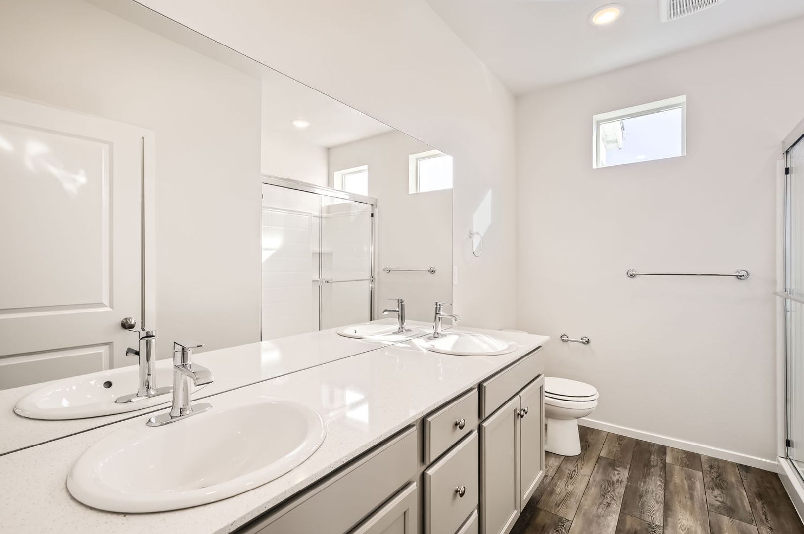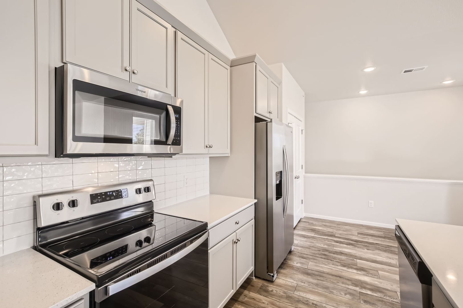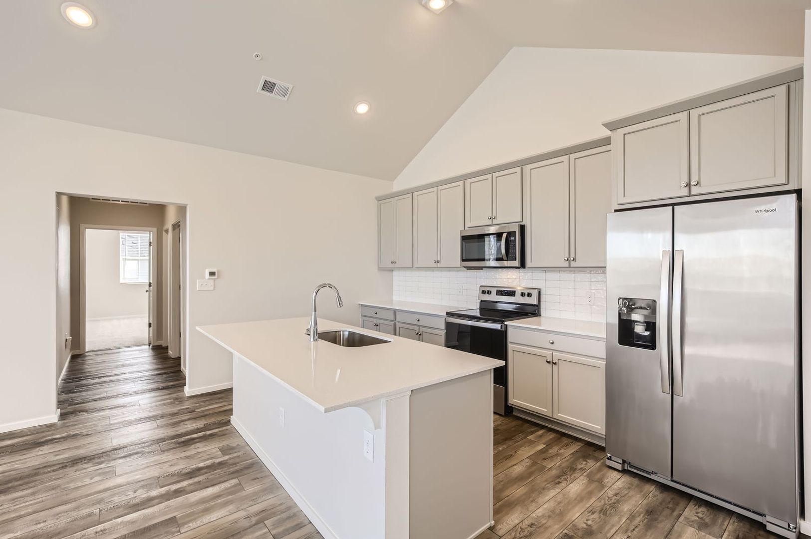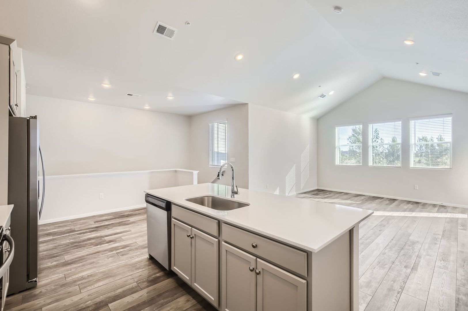 Live the Raindance life- elegant living with a park view! This stunning 2-bedroom, 2-bathroom gem stretches across 1,395 square feet, blending modern elegance with thoughtful design in every corner. From the moment you walk in, you'll feel the warmth and openness of this home. The heart of it all is the kitchen-a true showstopper with its soaring vaulted ceilings, sleek stainless-steel appliances, chic white subway tile, and gorgeous stone countertops. Step into the living room, where natural light pours through large windows, creating a bright and cozy space that effortlessly flows out to the covered patio. Imagine sipping your morning coffee here, or winding down in the evening all while enjoying the serene park views. The primary suite is all about relaxation-a peaceful retreat with a spa-like bathroom featuring dual sinks and a glass-door shower. With a convenient laundry room, a two-car garage, and unbeatable access to Raindance's amazing amenities-including 15 miles of community trails, orchards, farms, and much more!