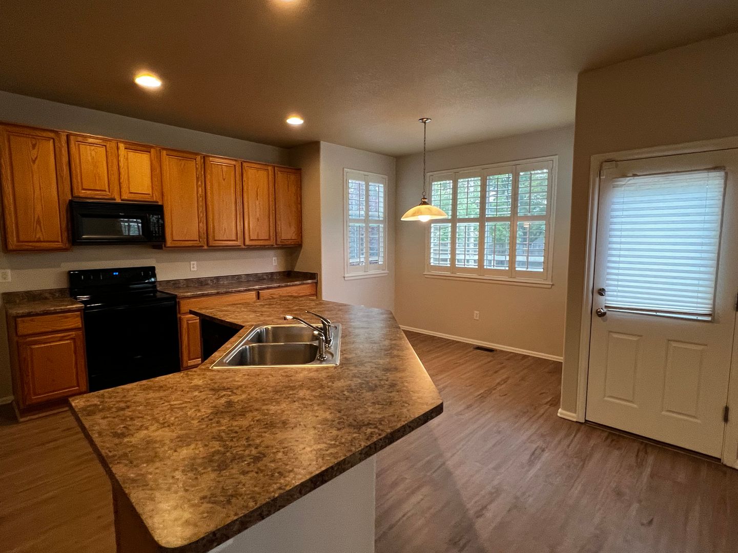 This home features an open and functional floor plan designed for comfortable living and easy entertaining. The main level showcases attractive plank flooring and a bright kitchen that overlooks the backyard, creating a seamless connection between indoor and outdoor spaces. The cozy family room includes a gas fireplace, perfect for relaxing evenings.
