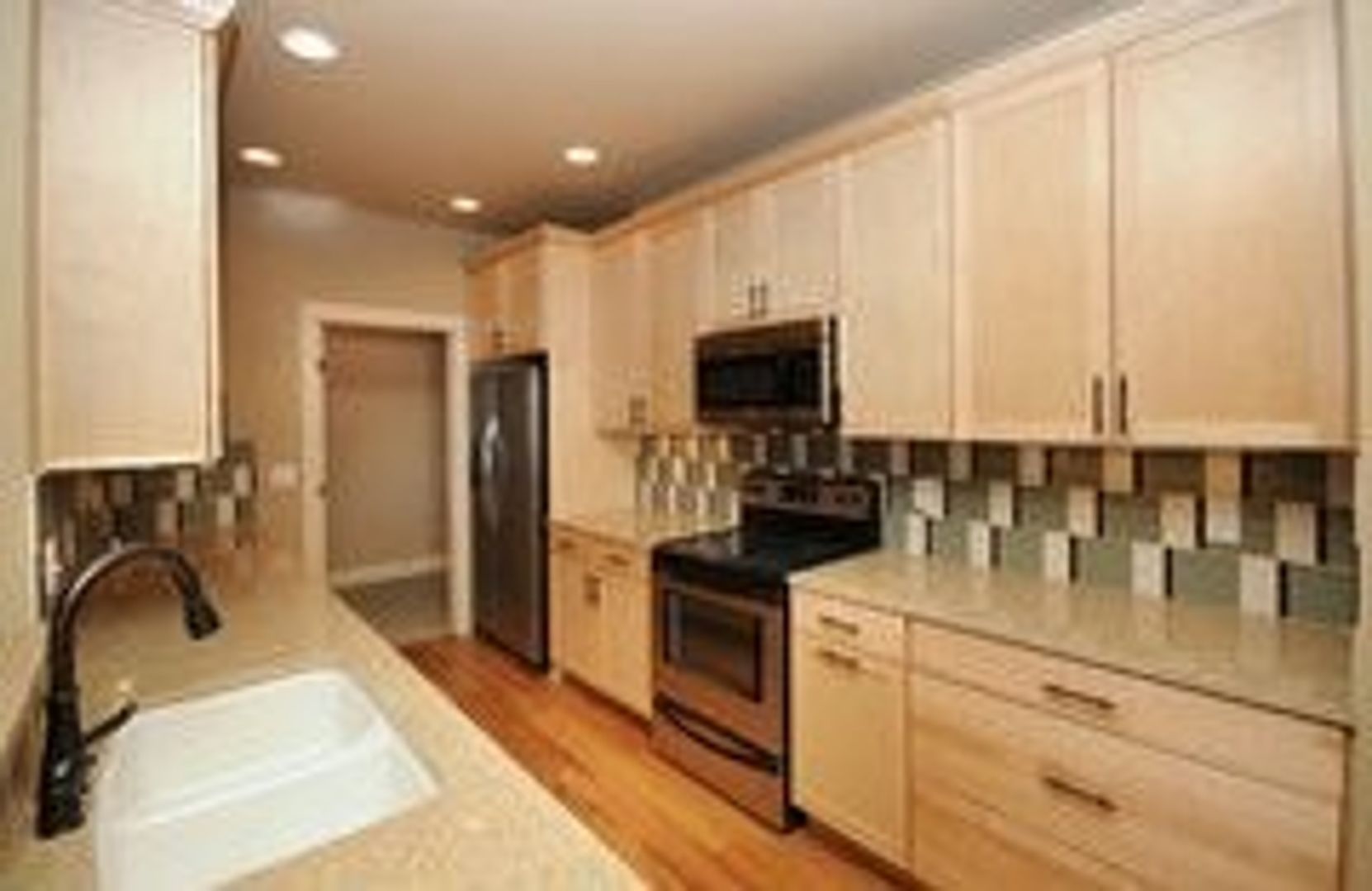 Features include rich wood flooring, 9-foot ceilings, decorative trim accents, and a cozy fireplace with a slate surround. The kitchen is beautifully appointed with granite countertops, tile backsplash, and stainless steel appliances, perfect for both everyday living and entertaining.