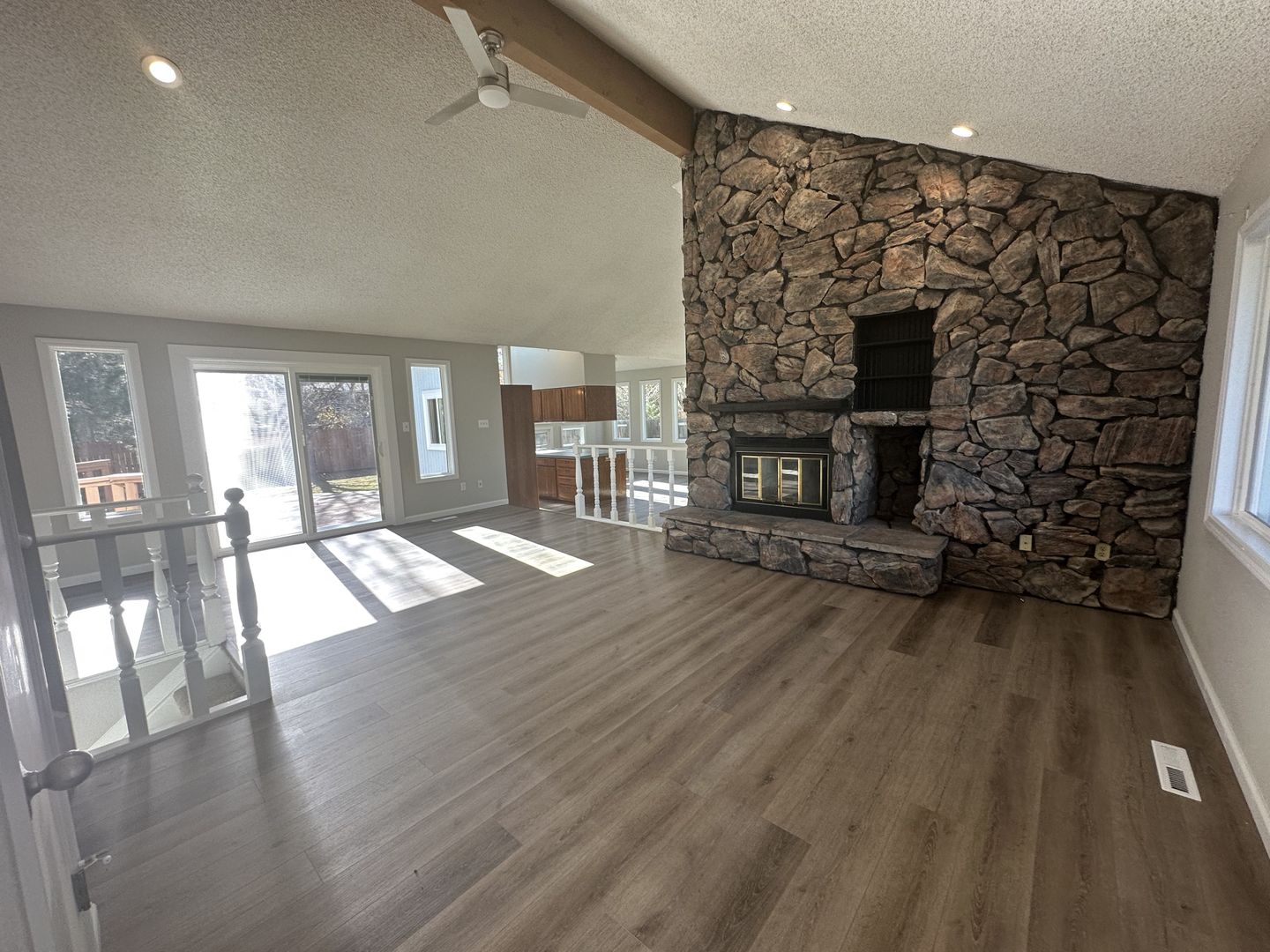 NEWLY REMODELED! Gorgeous and open floor plan. Inviting living space with wood burning fireplace. Large kitchen and dining room for entertaining. Primary bedroom has its own patio. Generous size fenced in backyard. Newer windows for increased energy efficiency. Central AC and forced gas furnace. Beautiful new flooring and paint.