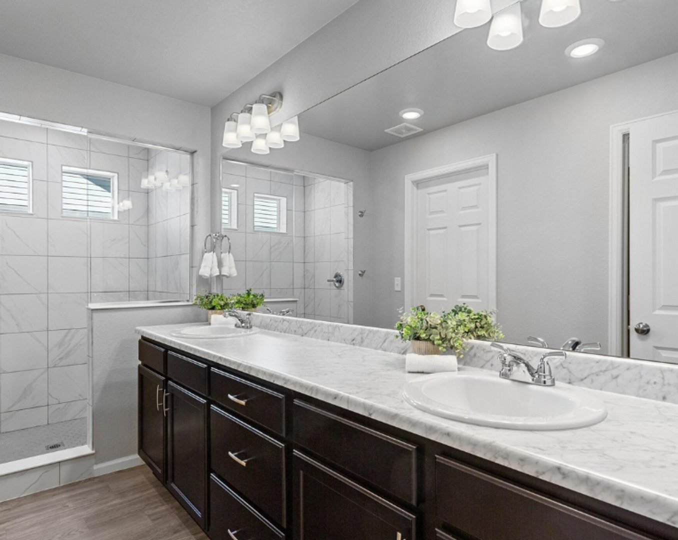 Upstairs, the primary suite serves as a relaxing retreat, complete with a walk-in closet and a spa-like walk-in shower. You’ll also appreciate the convenience of upper-level laundry.